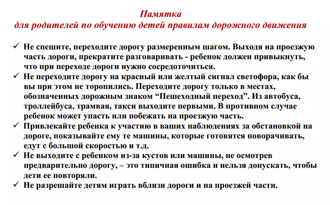 Памятка родителям по правилам дорожного движения