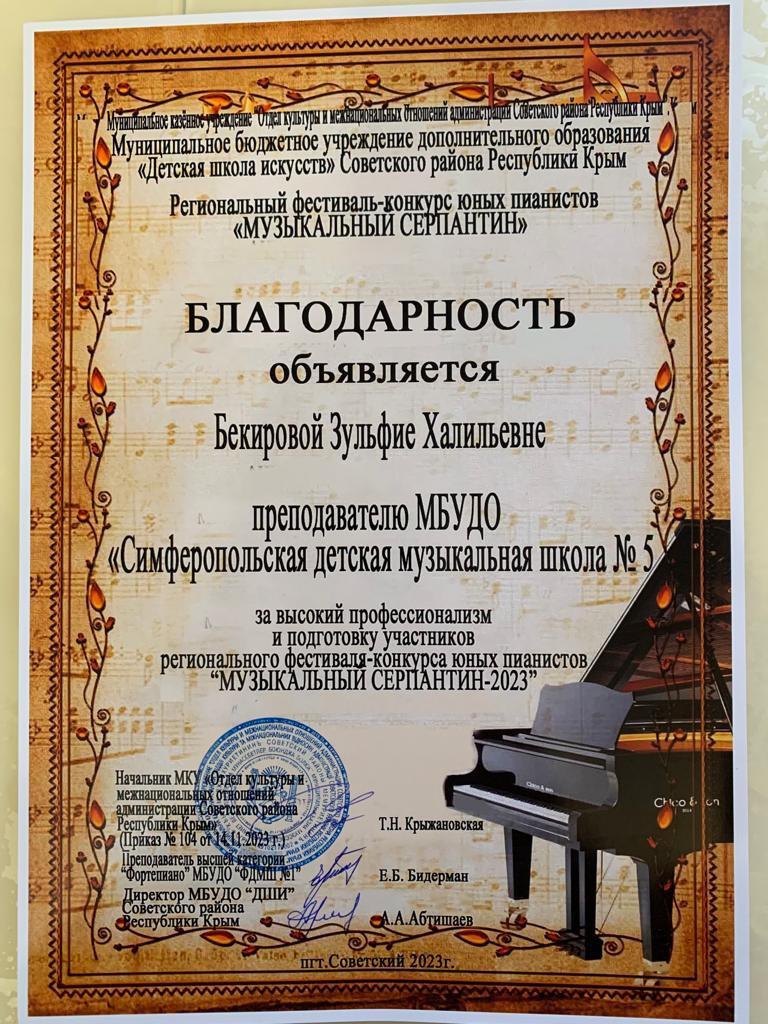 Муниципальное бюджетное учреждение дополнительного образования «Симферопольская детская музыкальная школа № 5» муниципального образования городской округ Симферополь