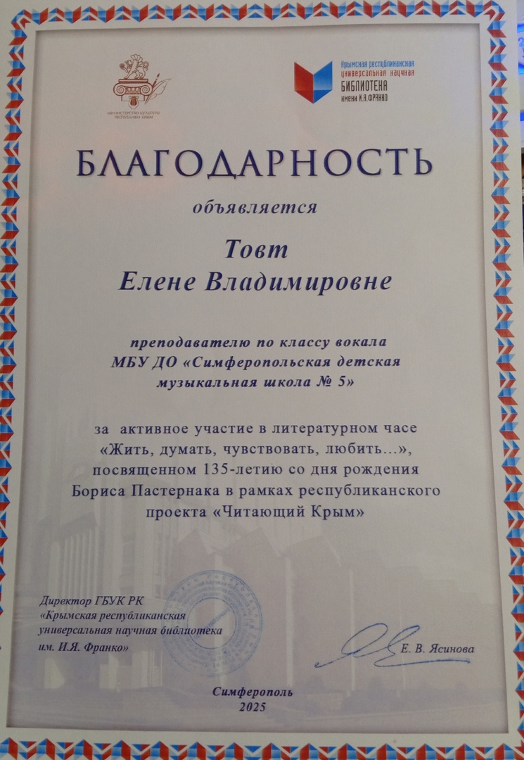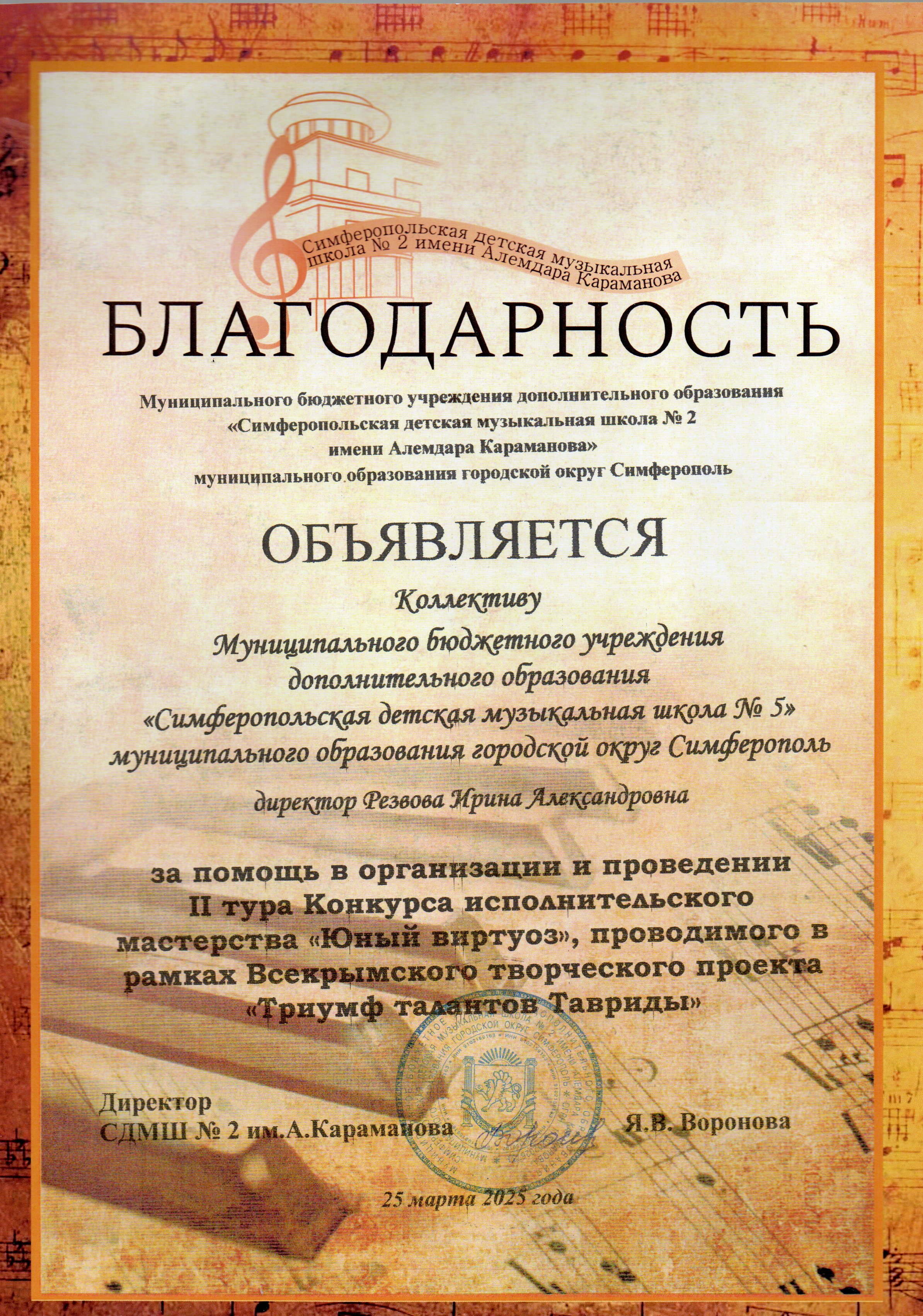 Муниципальное бюджетное учреждение дополнительного образования «Симферопольская детская музыкальная школа № 5» муниципального образования городской округ Симферополь