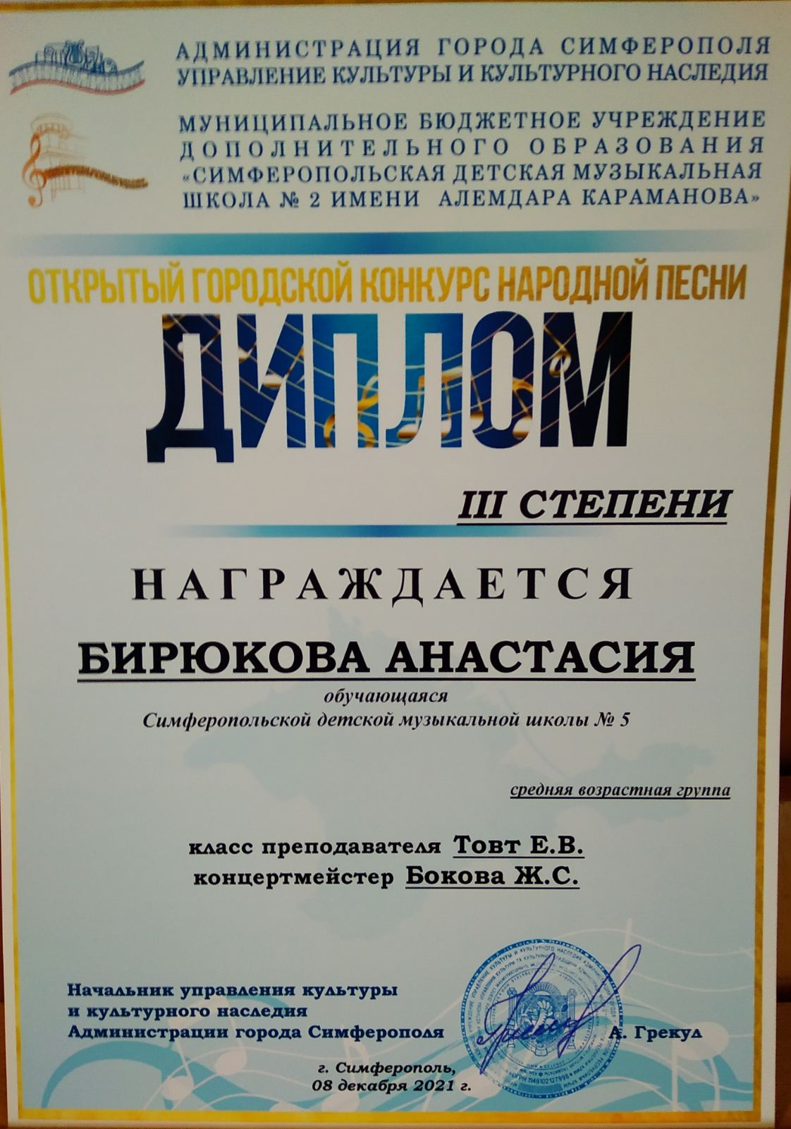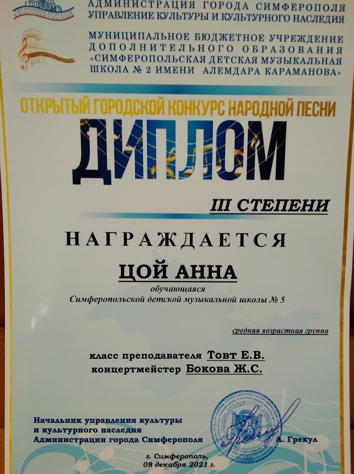Муниципальное бюджетное учреждение дополнительного образования «Симферопольская детская музыкальная школа № 5» муниципального образования городской округ Симферополь